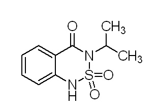 別名 滅草松;百草克;苯并硫二嗪酮;噻草平;排草丹;本達(dá)隆;3-異丙基-(1H)-苯駢-2,1,3-噻二嗪-4-酮-2,2-二氧化物;3-Isopropyl-1H-2,1,3-benzothiadiazin-4(3H)-one-2,2-dioxide; 3-Isopropyl-3,4-dihydro-2,1,3-benzothiadiazin-4(1H)-one 2,2-dioxide; Adagio; BAS 351H; Basagran; Basagran 4E; Bendioxide; Thiadiazinol;