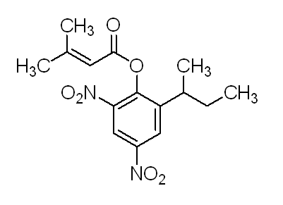 別名  樂殺螨 ;2-仲丁基-4,6-二硝基苯基-3,3-二甲基丙烯酸酯;2-(1-Methylpropyl)-4,6-dinitrophenyl 3-methyl-2-butenoate